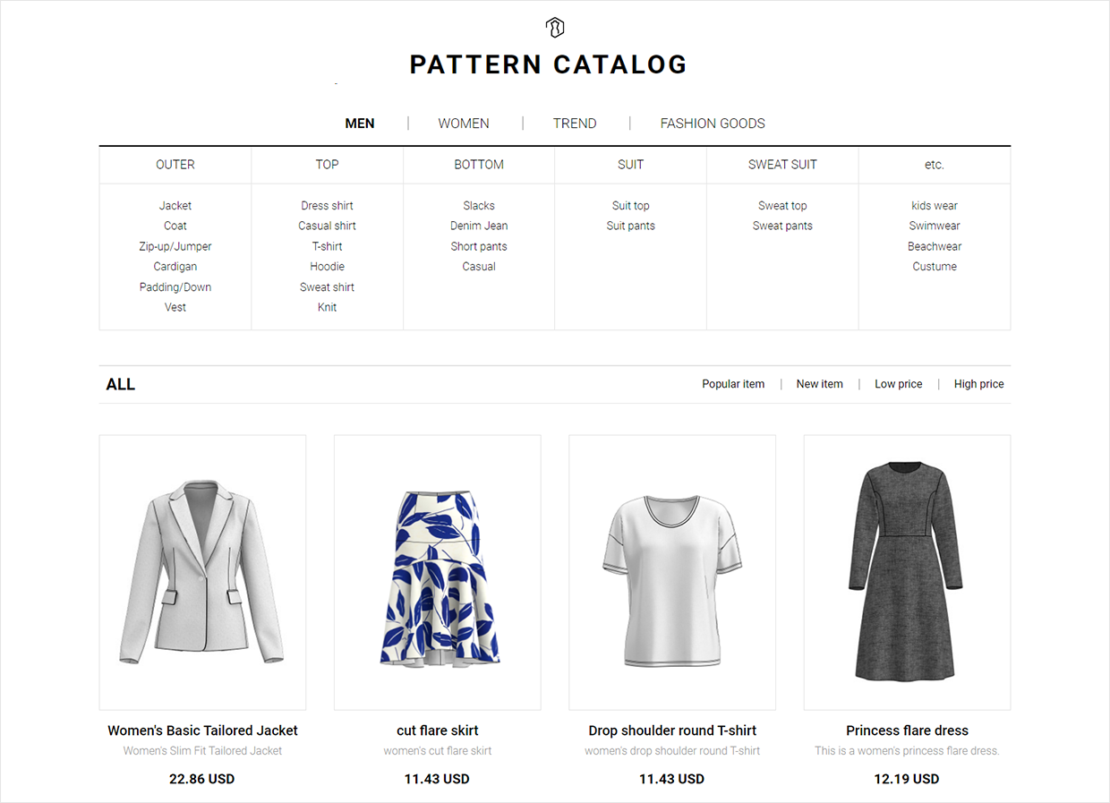 D3DFASHION.COM provides various 3D patterns through PATTERN CATALOG.